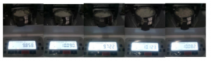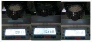 - 將防風(fēng)盤、支架、樣品盤一一裝好,接通電源,按下開機(jī)鍵,顯示屏進(jìn)入開機(jī)界面,首先按去皮鍵減去樣品盤重量,后將100g砝碼放入托盤進(jìn)行校準(zhǔn);