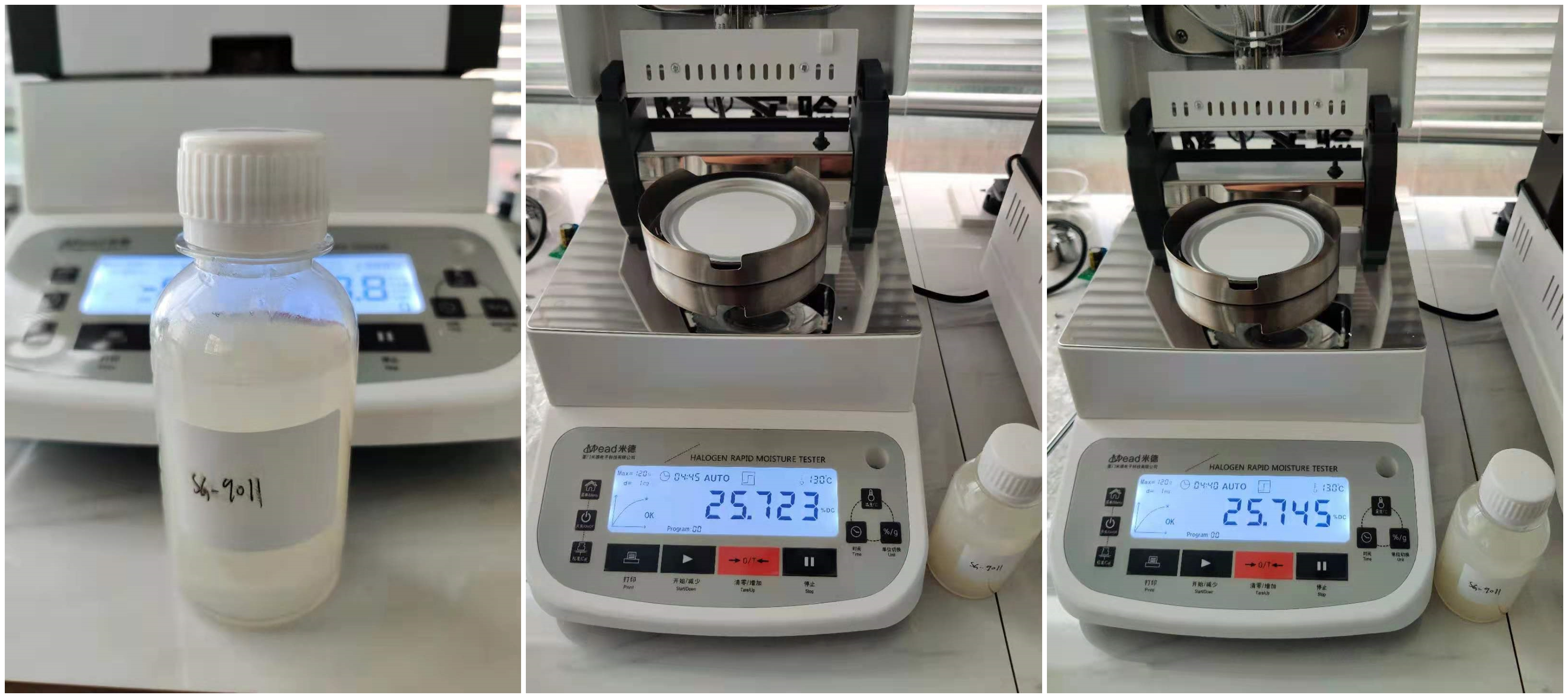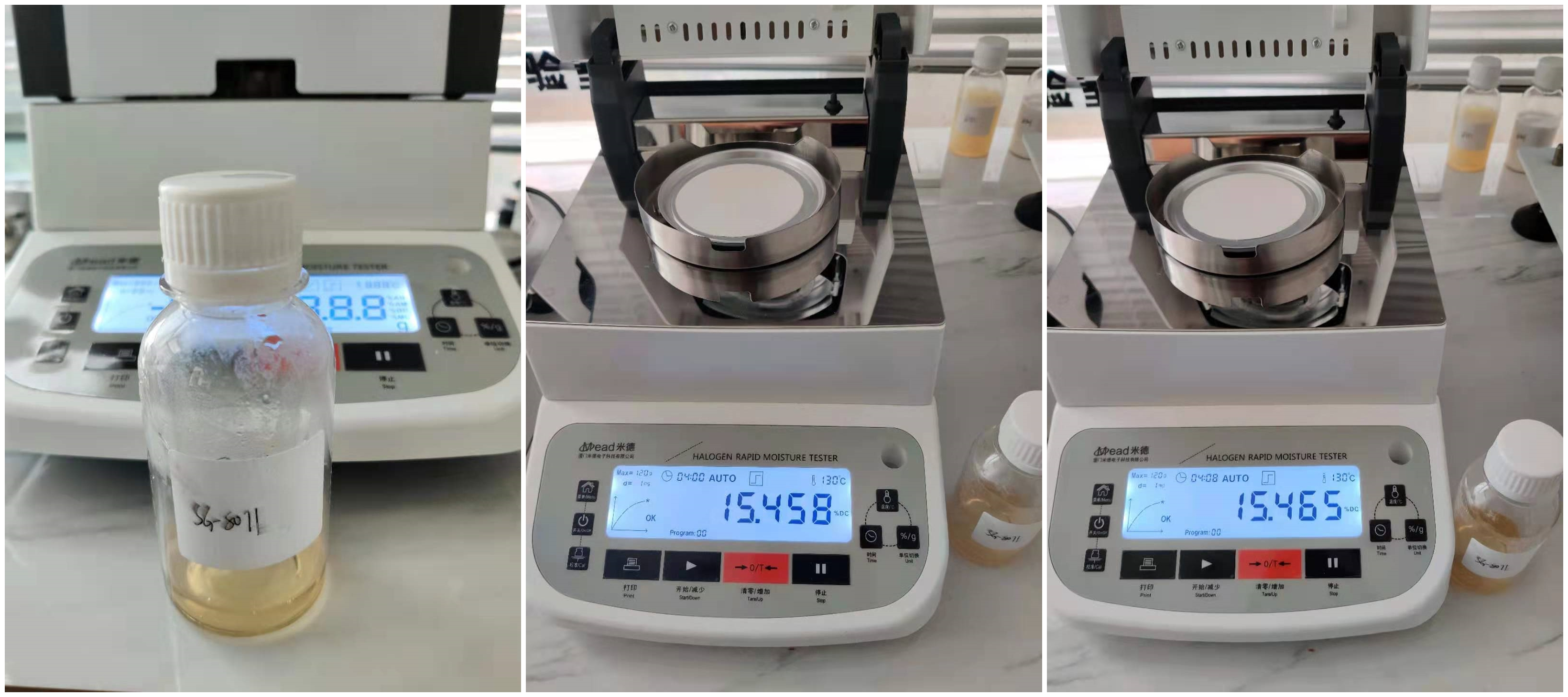 測試儀器:米德QL-720D(稱重精度0.001g,水分解析0.001%)