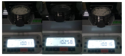 2 陶瓷粉末應盡可能平鋪均勻且鋪滿整個托盤,使得陶瓷粉末中的水分的完全烘干且數(shù)據(jù)更加精準。